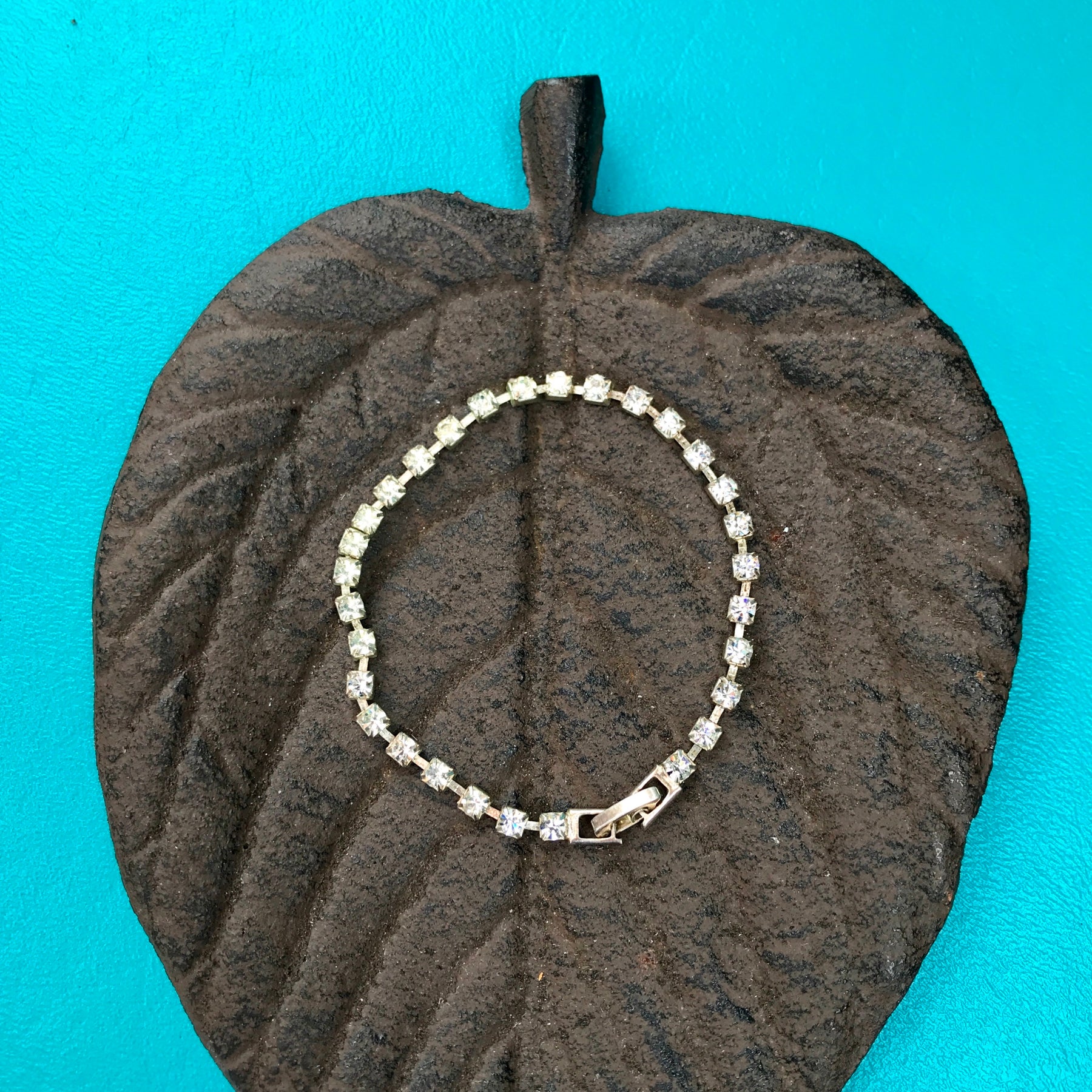 7.5" Vintage Single Strand 30 Gem Rhinestone Tennis Bracelet Flat Clasp