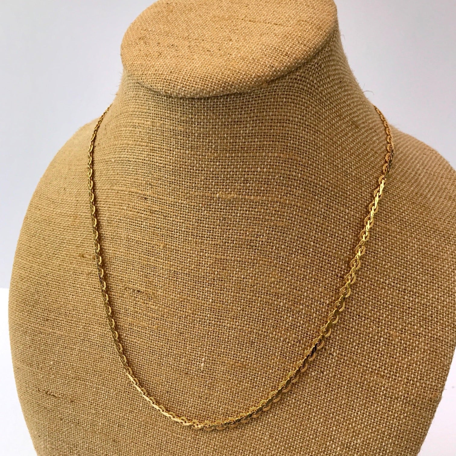 22" Trifari Ornate Gold Metal Small Textured Flat Link Necklace